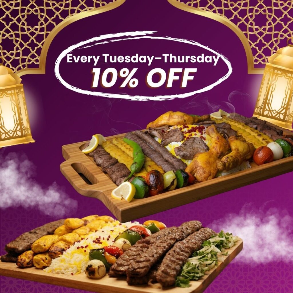 Enjoy 10% OFF Ramadan Family & Catering Packages every Tuesday to Thursday during Ramadan. This limited-time promotion makes weekday Iftar planning easier while maintaining the same premium quality and halal standards.